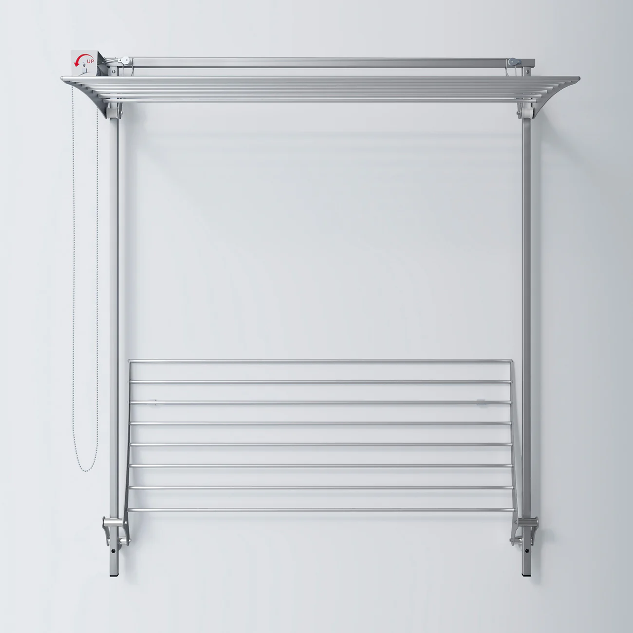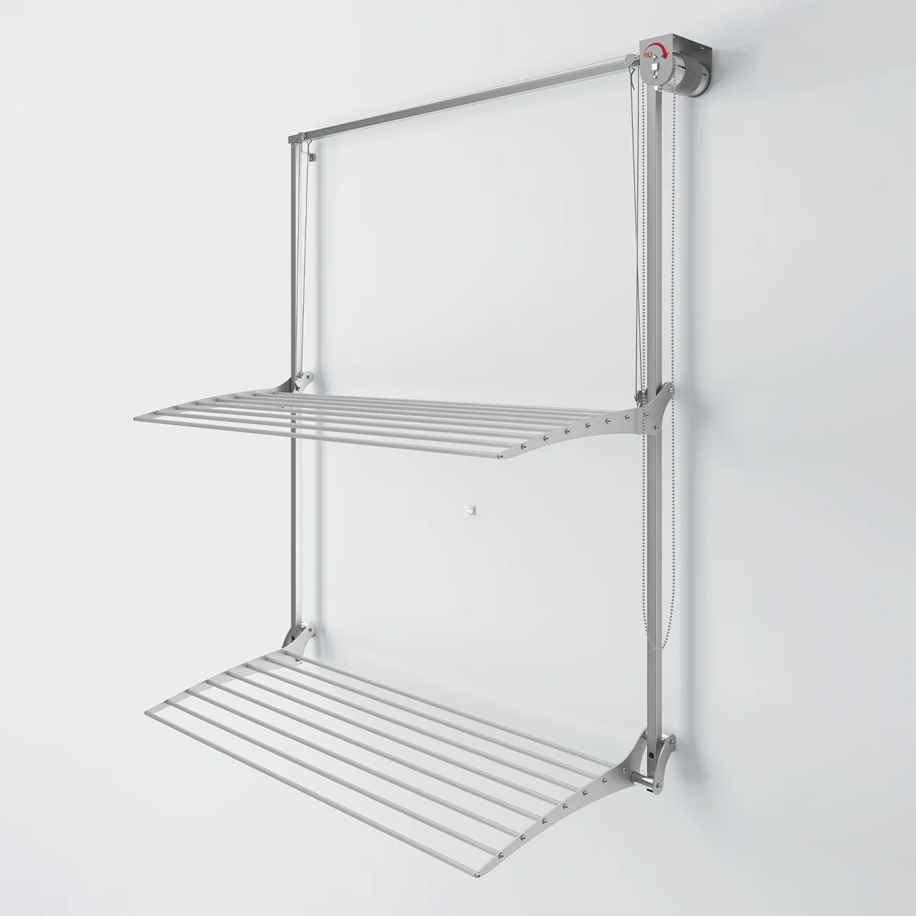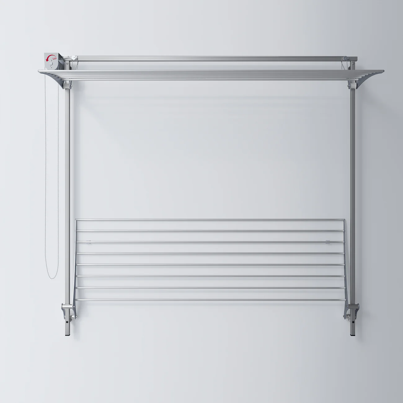 Foxydry Wall Plus features two independent racks, offering maximum flexibility. One rack extends down the wall, while the shorter, bottom rack remains fixed, providing a customizable drying solution for different laundry needs. The top rack can be adjusted to any height, giving you full control to tailor the drying space to your specific requirements and room dimensions. With a capacity of up to 20 kg, Foxydry Wall Plus can accommodate up to two full loads of laundry, making it an ideal option for medium-sized households